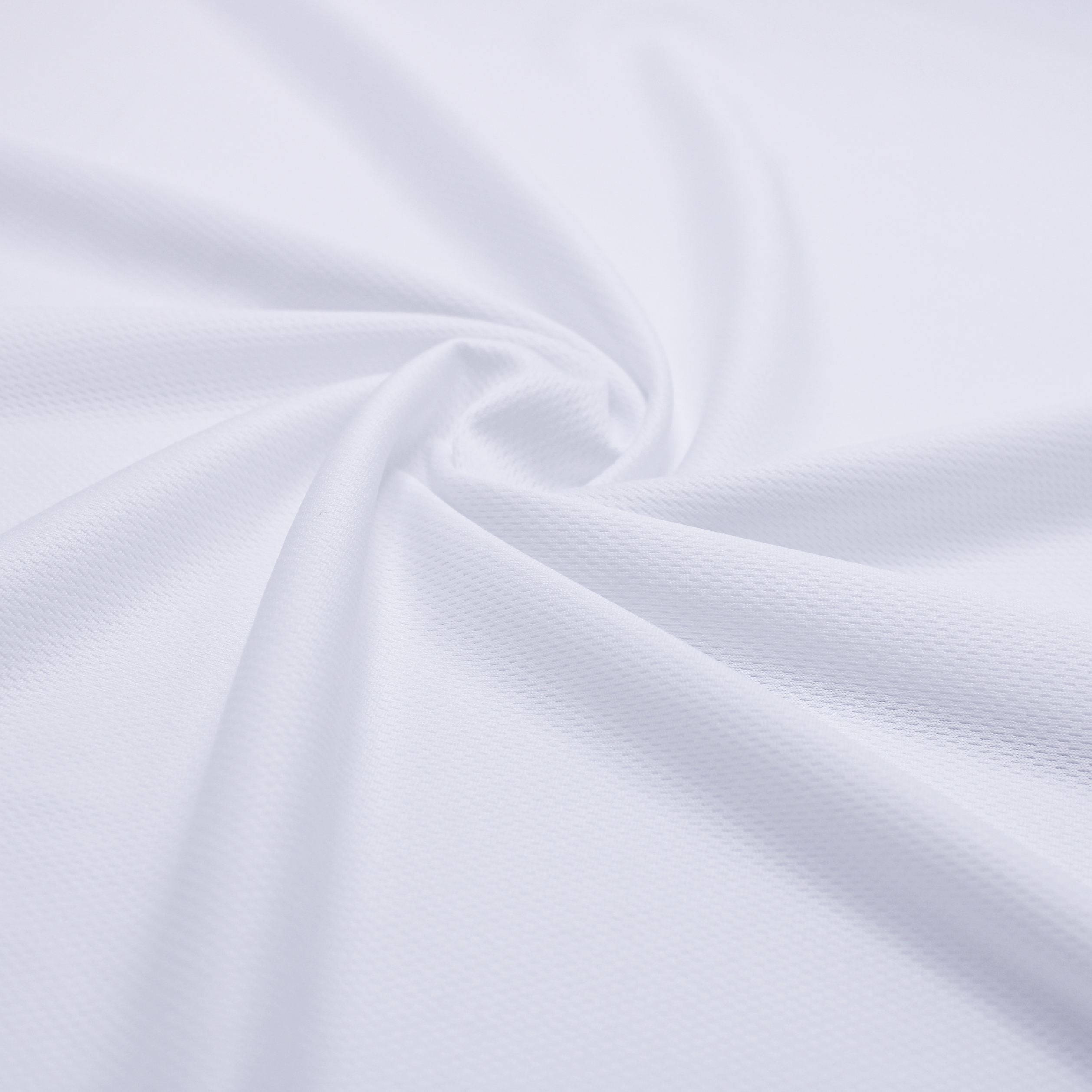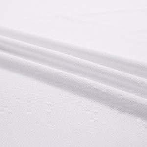 Polyester wicking birdseye mesh is lightweight, breathable, and anti-microbial. 2-way stretch with a smooth feel, cooling, and quick dry properties allow this fabric to be suitable for sportswear.