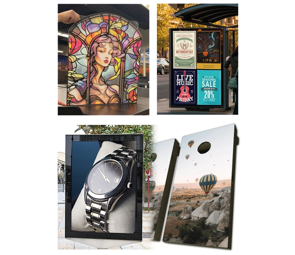 The JFX600 Series wide format flatbed printers boast high speed production with full board printing in under 60 seconds. With their quick registration system, semi-automated maintenance, full board and extra-large print areas of 8’ x 4’ and 8’x10’, they fit as perfectly in a high-volume packaging or POP shop as they do in specialized architectural printing and interior design shops.